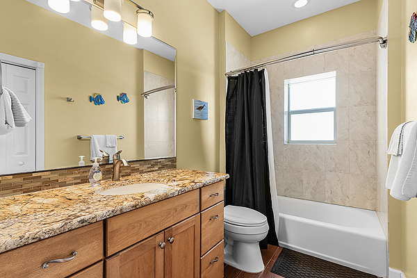 3 Bathrooms: Master en-suite Guest #1 Guest #2 (also has pool access) |